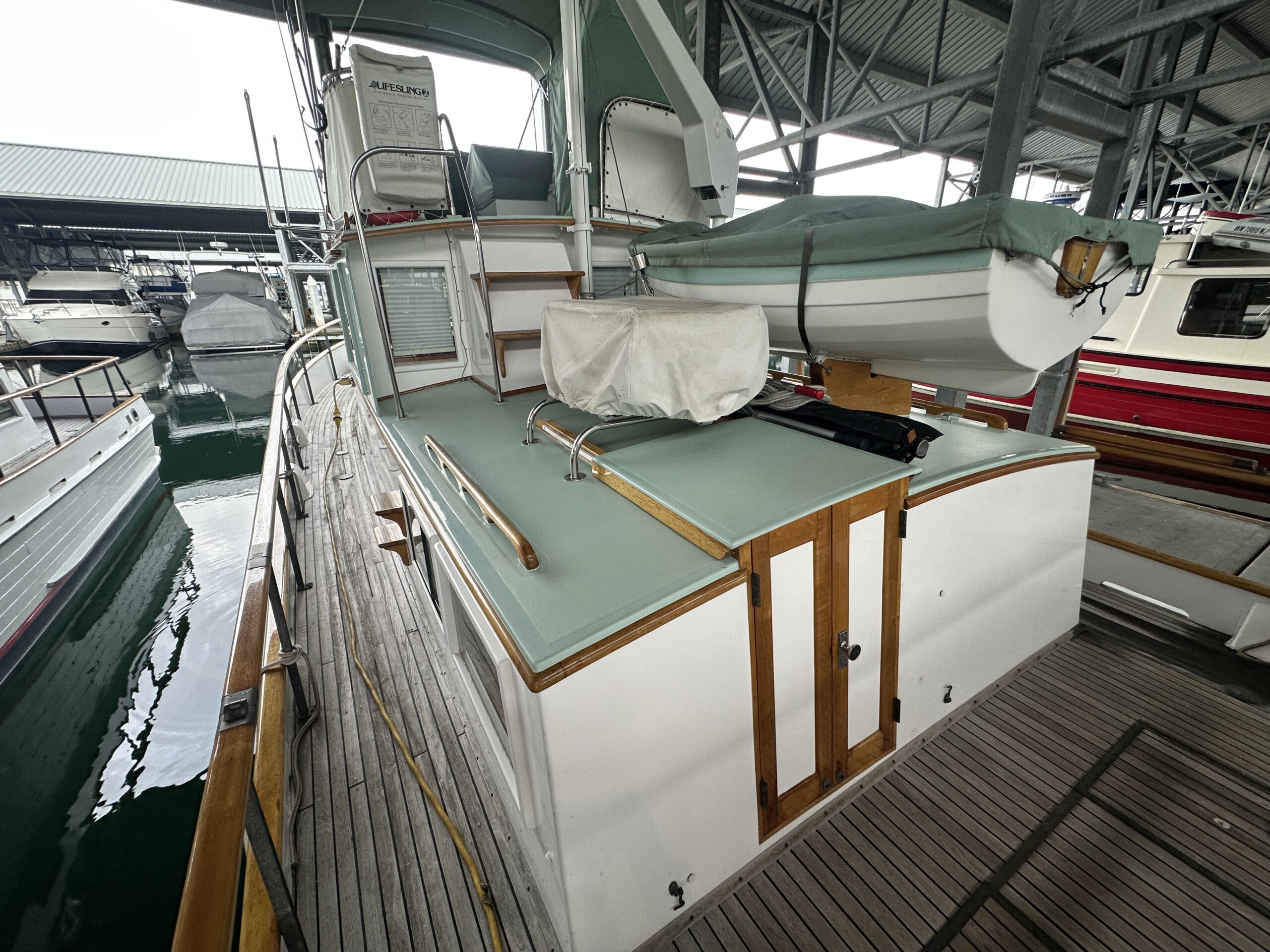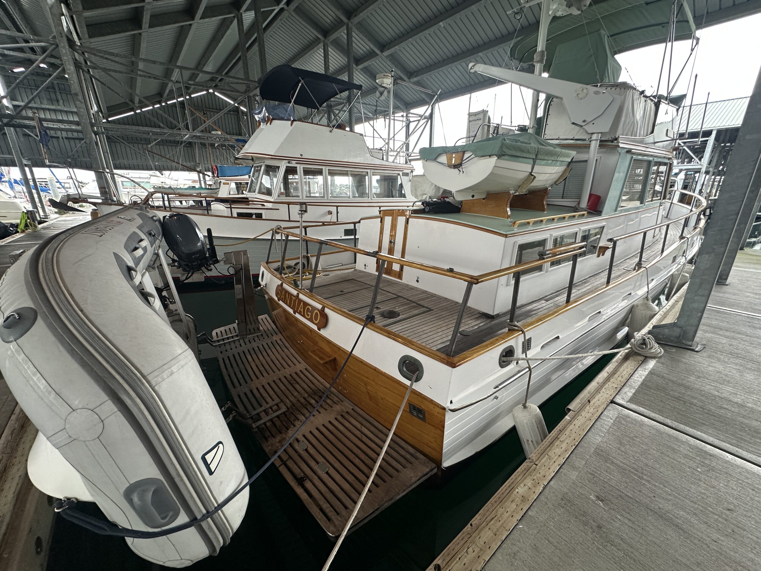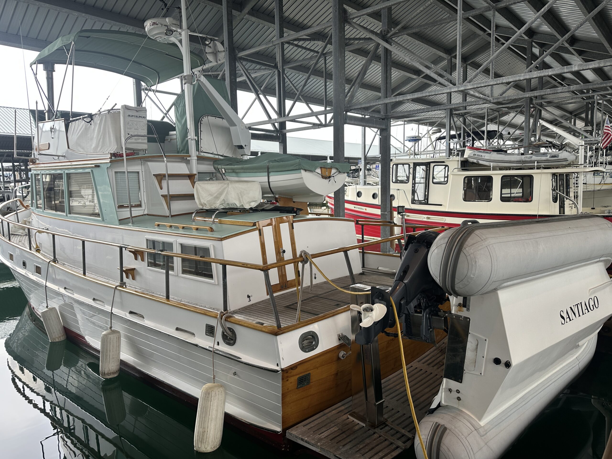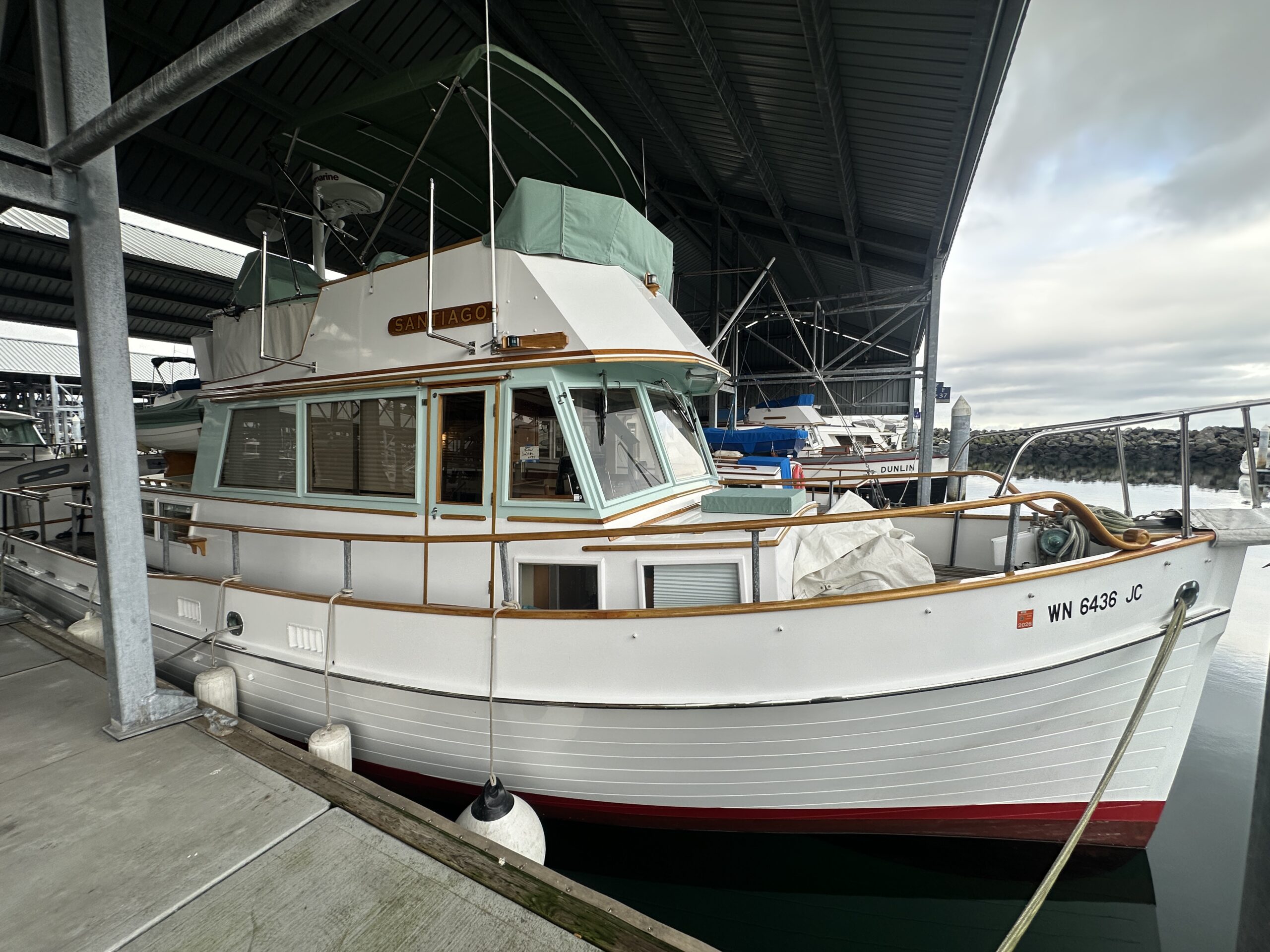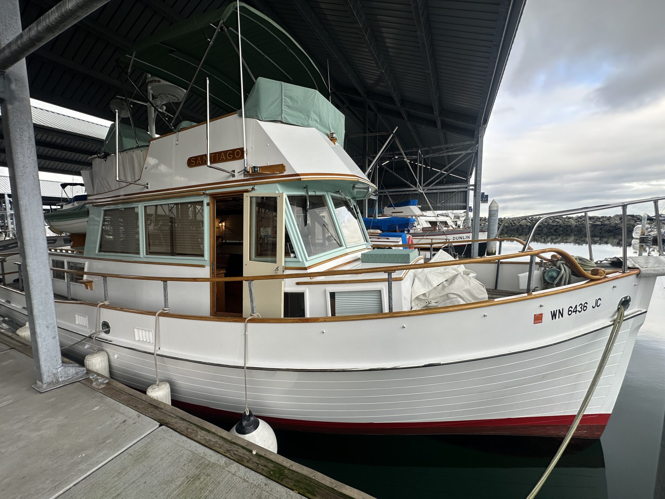 A well-designed and constructed wooden motor vessel that is structurally sound. Santiago has had one owner since its launch in 1973, and moored in a covered-berth at the Port of Edmonds Marina since its launch. The current owner purchased her in 2023 and has made the tough decision to list her for sale due to life changes. The owners have spared no expense in the upkeep of the vessel; the exterior finish is in impeccable shape, systems have been largely upgraded to modern equipment, upgraded wiring and electrical to modern standards, and the vessel fitted with extra equipment not usually seen on a 36 Grand Banks.